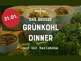 Bevor sich die Saison des wohl leckersten grünen Wintergemüses dem Ende zuneigt, wollen wir uns noch einmal mit der gesamten Nährstoffpower und Geschmacksgenuss von Grünkohl aufladen! Bei unserem großen Dinnerbuffet auf Gut Karlshöhe könnt ihr Grünkohl in vielen Variationen, von klassisch bis vegan, süß oder herzhaft schlemmen.